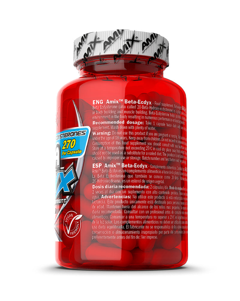 Amix™ Beta-Ecdyx es un suplemento natural que aprovecha los beneficios de la beta-ecdisterona, un compuesto bioactivo extraído de plantas que ayuda a mejorar el desarrollo muscular y la resistencia física sin interferir con el equilibrio hormonal.