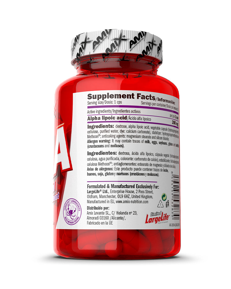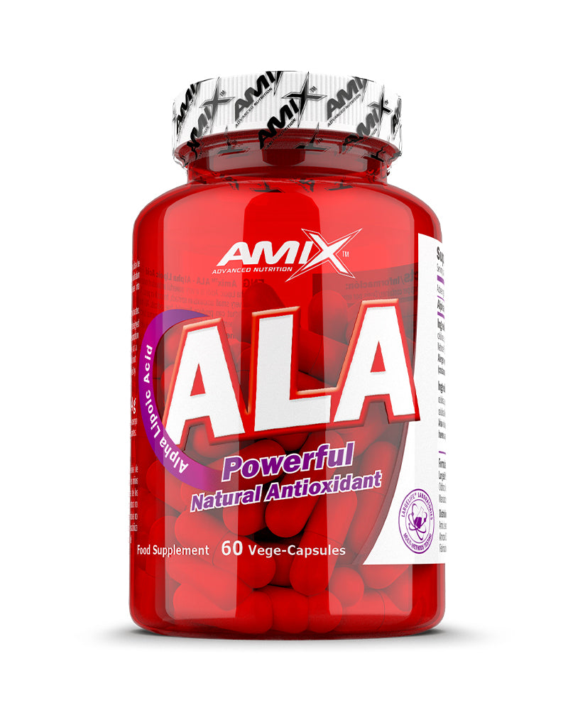 Amix ALA es un suplemento antioxidante formulado a base de ácido alfa lipoico, un compuesto natural que el cuerpo utiliza en la producción de energía celular. Este antioxidante destaca por su capacidad para actuar tanto en medios acuosos como grasos, ayudando a proteger las células frente al daño oxidativo.