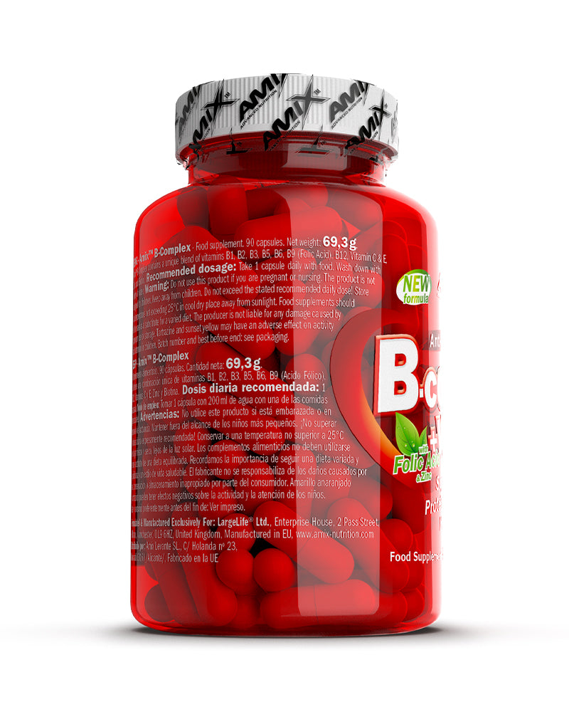Amix™ B-Complex ofrece una combinación completa de vitaminas del grupo B que contribuyen a mejorar el metabolismo energético, la salud cerebral y el equilibrio nervioso, ideal para quienes llevan un estilo de vida activo y necesitan mantener su vitalidad.